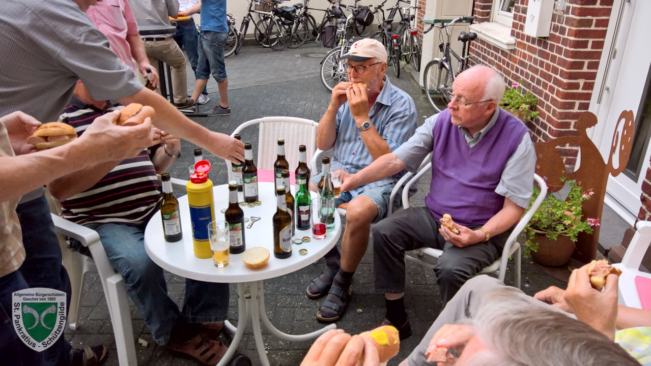 Gescher. Bei sommerlichen Temperaturen trafen sich die Vorstände, Offiziere, Gruppenführer und Ehemalige sowie ein Teil der Throngemeinschaft um König Willi Lammerding der St. Pankratius-Schützengilde zum Wintergang. Mit 75 Teilnehmern ging es durch die Gänge und Gassen von Gescher. Für diejenigen, die nicht gut zu Fuß waren, stand ein Shuttle zur Verfügung. Einen Zwischenstopp legten die Teilnehmer beim ehemaligen Präsidenten Bernd Theo Grimmelt ein. Dort wurde die Vereinsstele eingeweiht, die er zum Abschied nach 14 Jahren Präsidentschaft überreicht bekommen hat. Präsident Peter Schmitz ließ nach weiteren Zwischenstopps den gemütlichen teil des Abends beginnen. Zum Aufstellen des Maibaums treffen sich alle am 31. Mai.