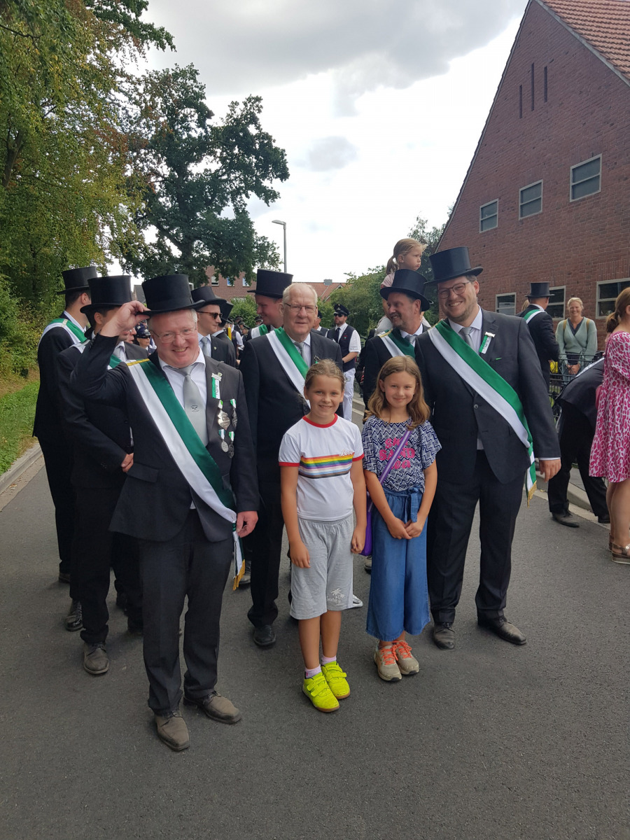 Zu einer ganz besonderen Aktion hatte unser langjähriger Adjutant und Oberleutnant Bernhard „Scheese“ Greve sämtliche Aktiven inkl. Partner sowie Freunde und Nachbarn geladen: Nach über 43 Jahren aktivem Dienst in der Schützengilde hatte er nach dem letzten Schützenfest den Entschluss gefasst, den Säbel an den Nagel zu hängen und die weitere Zeit als Schütze zu verbringen.
