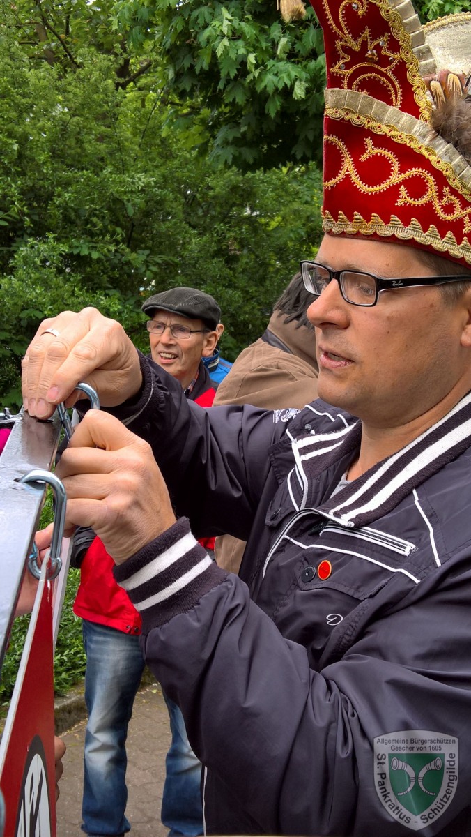 Bei strahlendem Himmel legte sich unsere aktuelle Throngemeinschaft wieder mächtig ins Zeug, um die altehrwürdige Schützenstation an der Hauskampstraße feierlich zu schmücken.