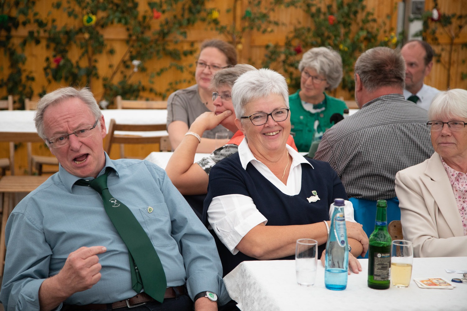 Im Folgenden waren alle Ereignisse voll und ganz auf das große Schützenfest im August ausgerichtet. Neben der Weinprobe der Offiziellen nebst Begleitung, dem spontanen und erfolgreichen Aussuchen einer neuen Musikgruppe über das Vorüben der Offiziere bis hin zum Knubbenschiessen mit dem Knubbenkönig Steffen Hovestadt und dem Kinderpaar Felix und Marlene.